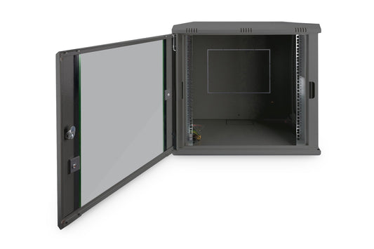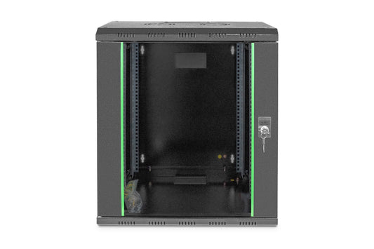 12U wandkast, SoHo, ongemonteerd 540x400x595 mm, glazen frontdeur, zwart (RAL 9005)