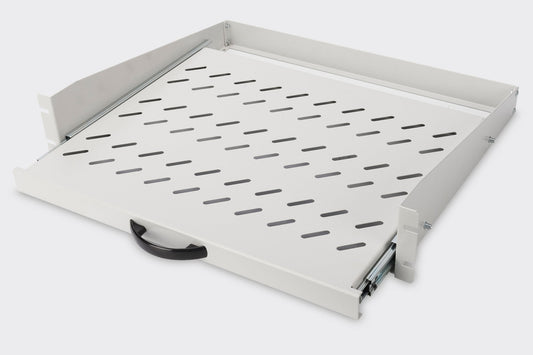 2U uitschuifbaar legbord voor kasten vanaf 450 mm diepte 88x483x352 mm, tot 30 kg, grijs (RAL 7035)