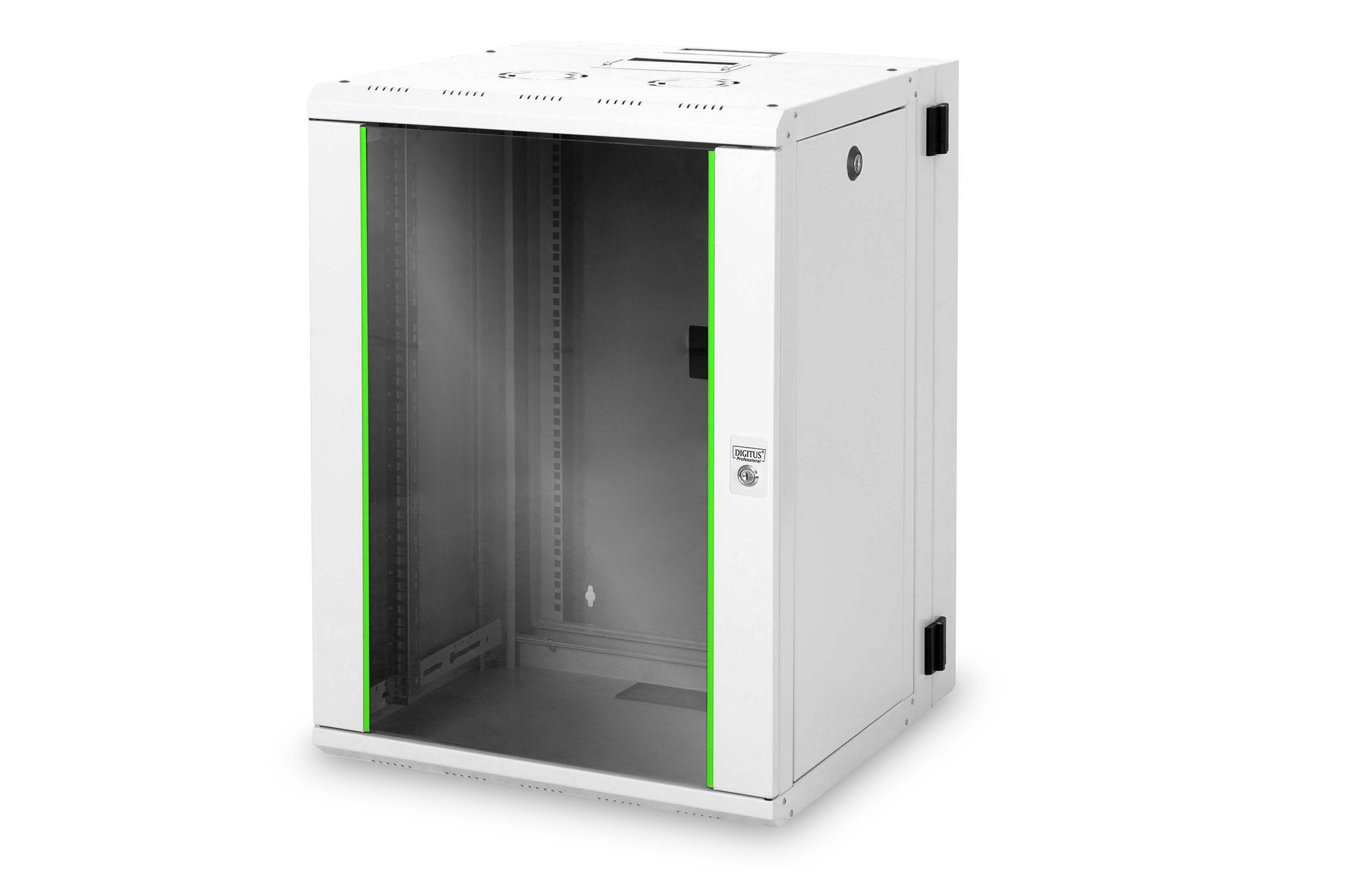 - 483 mm (19“) profielrails gemonteerd aan de voorzijde binnenin de kast, gegalvaniseerd