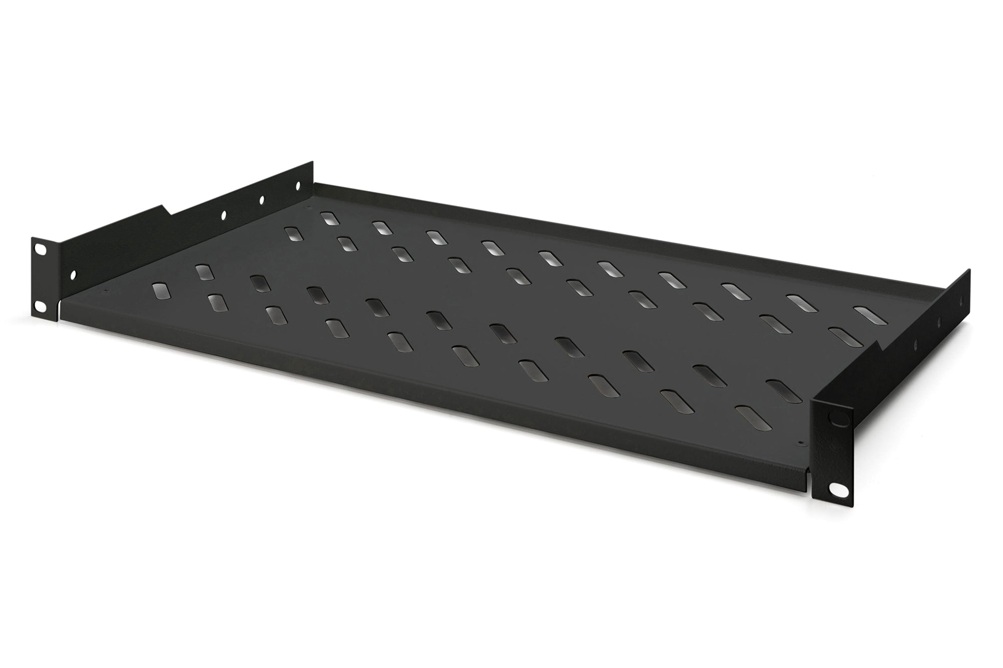 1U legbord vaste installatie voor kasten vanaf 400 mm diepte 45x482x250 mm, tot 15 kg, zwart (RAL 9005)