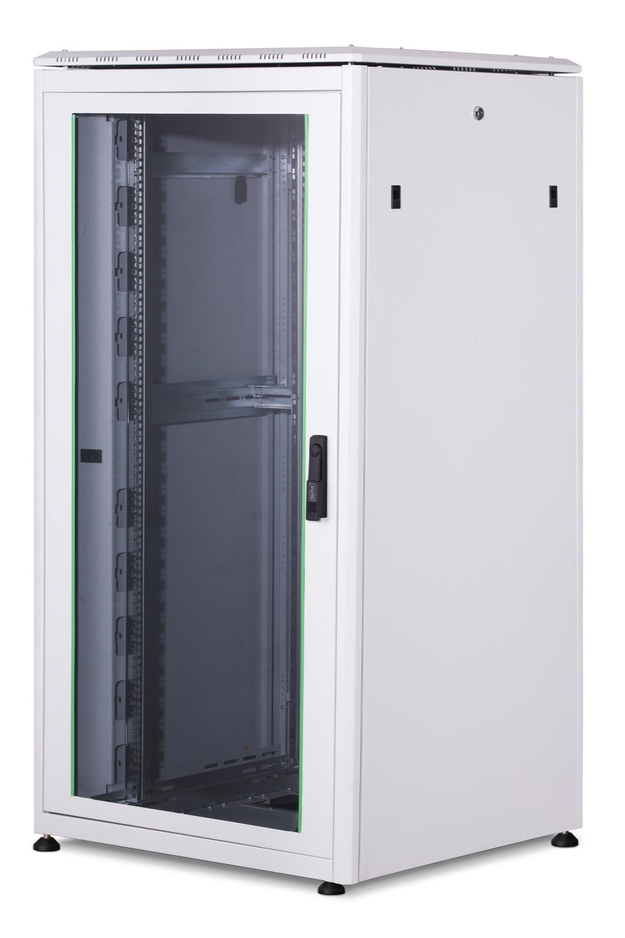 Onze patchkasten zijn ontworpen en geproduceerd voor bijzonder handige en flexibele netwerkbekabeling. Een modulair basischassis, dat kan worden geopend met behulp van vastgeschroefde blinde panelen van 483 mm (19\"), biedt voldoende ruimte voor alle soorten kabels. Ook zijn er kabelinvoeren met borstels aan de boven- en onderkant van de behuizing en nog een aan de achterkant van het basischassis. Borstelstrips aan de achterkant boven en onder de achterdeur (vanaf 26U) maken gebruik in een groot aantal toepassingsscenario's mogelijk. Royale verticale kabelkanalen met kabelgeleidinghulp en deksel, geïnstalleerd aan de voorkant (vanaf 800 mm kastbreedte), ronden de veelzijdige eigenschappen van de netwerkbehuizing perfect af. Binnenin zijn twee paar geslingerde en gegalvaniseerde 483 mm (19\") profielrails geïnstalleerd, voorzien van hoogte-eenheden die in tegengestelde richting kunnen worden afgelezen. Ze zijn traploos verstelbaar en verbonden met extra diepteschoren in de kast. Elke kast is een robuuste stalen constructie van maximaal 1,5 mm dik plaatstaal. De kleuren zijn elektrostatische poedercoating in de standaardkleuren grijs (RAL 7035) en zwart (RAL 9005). Modulaire afsluitbare en verwijderbare zijpanelen en deuren verbeteren de toegankelijkheid. Deurscharnieren kunnen worden vervangen. Bovendien kunnen de kasten indien nodig volledig worden gedemonteerd dankzij het demonteerbare ontwerp.