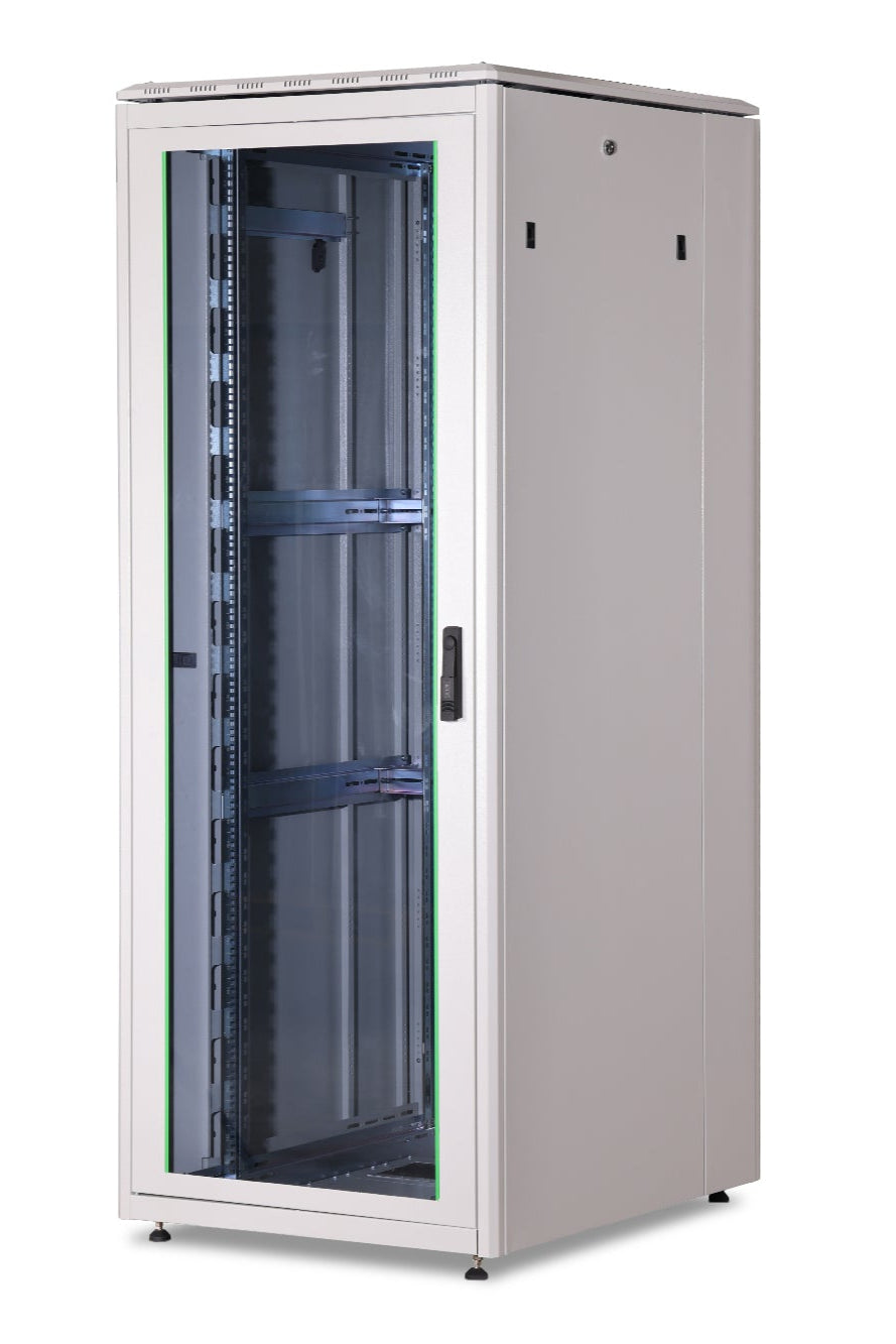 Onze patchkasten zijn ontworpen en geproduceerd voor bijzonder handige en flexibele netwerkbekabeling. Een modulair basischassis, dat kan worden geopend met behulp van vastgeschroefde blinde panelen van 483 mm (19\"), biedt voldoende ruimte voor alle soorten kabels. Ook zijn er kabelinvoeren met borstels aan de boven- en onderkant van de behuizing en nog een aan de achterkant van het basischassis. Borstelstrips aan de achterkant boven en onder de achterdeur (vanaf 26U) maken gebruik in een groot aantal toepassingsscenario's mogelijk. Royale verticale kabelkanalen met kabelgeleidinghulp en deksel, geïnstalleerd aan de voorkant (vanaf 800 mm kastbreedte), ronden de veelzijdige eigenschappen van de netwerkbehuizing perfect af. Binnenin zijn twee paar geslingerde en gegalvaniseerde 483 mm (19\") profielrails geïnstalleerd, voorzien van hoogte-eenheden die in tegengestelde richting kunnen worden afgelezen. Ze zijn traploos verstelbaar en verbonden met extra diepteschoren in de kast. Elke kast is een robuuste stalen constructie van maximaal 1,5 mm dik plaatstaal. De kleuren zijn elektrostatische poedercoating in de standaardkleuren grijs (RAL 7035) en zwart (RAL 9005). Modulaire afsluitbare en verwijderbare zijpanelen en deuren verbeteren de toegankelijkheid. Deurscharnieren kunnen worden vervangen. Bovendien kunnen de kasten indien nodig volledig worden gedemonteerd dankzij het demonteerbare ontwerp.