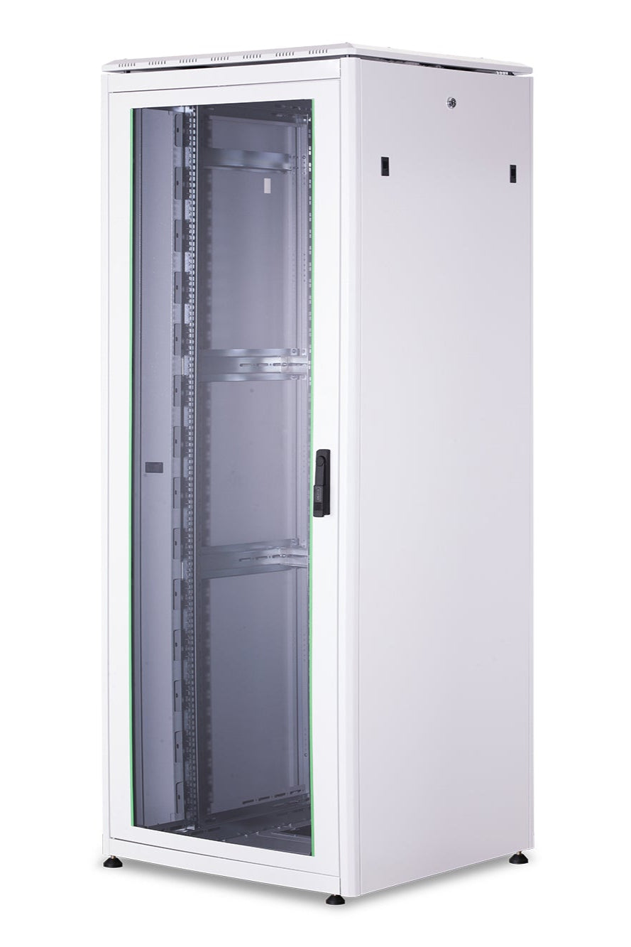 Onze patchkasten zijn ontworpen en geproduceerd voor bijzonder handige en flexibele netwerkbekabeling. Een modulair basischassis, dat kan worden geopend met behulp van vastgeschroefde blinde panelen van 483 mm (19\"), biedt voldoende ruimte voor alle soorten kabels. Ook zijn er kabelinvoeren met borstels aan de boven- en onderkant van de behuizing en nog een aan de achterkant van het basischassis. Borstelstrips aan de achterkant boven en onder de achterdeur (vanaf 26U) maken gebruik in een groot aantal toepassingsscenario's mogelijk. Royale verticale kabelkanalen met kabelgeleidinghulp en deksel, geïnstalleerd aan de voorkant (vanaf 800 mm kastbreedte), ronden de veelzijdige eigenschappen van de netwerkbehuizing perfect af. Binnenin zijn twee paar geslingerde en gegalvaniseerde 483 mm (19\") profielrails geïnstalleerd, voorzien van hoogte-eenheden die in tegengestelde richting kunnen worden afgelezen. Ze zijn traploos verstelbaar en verbonden met extra diepteschoren in de kast. Elke kast is een robuuste stalen constructie van maximaal 1,5 mm dik plaatstaal. De kleuren zijn elektrostatische poedercoating in de standaardkleuren grijs (RAL 7035) en zwart (RAL 9005). Modulaire afsluitbare en verwijderbare zijpanelen en deuren verbeteren de toegankelijkheid. Deurscharnieren kunnen worden vervangen. Bovendien kunnen de kasten indien nodig volledig worden gedemonteerd dankzij het demonteerbare ontwerp.