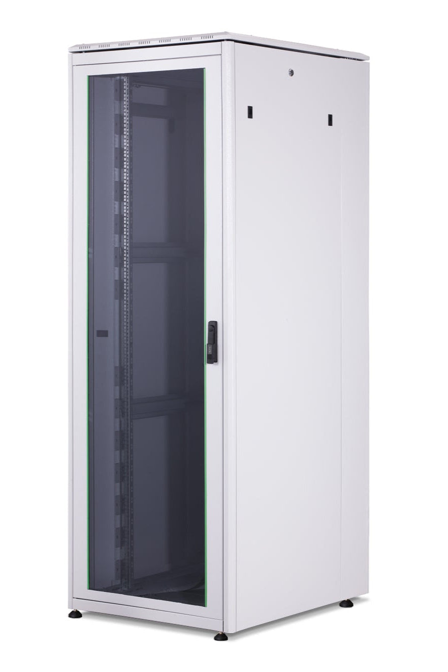 Onze patchkasten zijn ontworpen en geproduceerd voor bijzonder handige en flexibele netwerkbekabeling. Een modulair basischassis, dat kan worden geopend met behulp van vastgeschroefde blinde panelen van 483 mm (19\"), biedt voldoende ruimte voor alle soorten kabels. Ook zijn er kabelinvoeren met borstels aan de boven- en onderkant van de behuizing en nog een aan de achterkant van het basischassis. Borstelstrips aan de achterkant boven en onder de achterdeur (vanaf 26U) maken gebruik in een groot aantal toepassingsscenario's mogelijk. Royale verticale kabelkanalen met kabelgeleidinghulp en deksel, geïnstalleerd aan de voorkant (vanaf 800 mm kastbreedte), ronden de veelzijdige eigenschappen van de netwerkbehuizing perfect af. Binnenin zijn twee paar geslingerde en gegalvaniseerde 483 mm (19\") profielrails geïnstalleerd, voorzien van hoogte-eenheden die in tegengestelde richting kunnen worden afgelezen. Ze zijn traploos verstelbaar en verbonden met extra diepteschoren in de kast. Elke kast is een robuuste stalen constructie van maximaal 1,5 mm dik plaatstaal. De kleuren zijn elektrostatische poedercoating in de standaardkleuren grijs (RAL 7035) en zwart (RAL 9005). Modulaire afsluitbare en verwijderbare zijpanelen en deuren verbeteren de toegankelijkheid. Deurscharnieren kunnen worden vervangen. Bovendien kunnen de kasten indien nodig volledig worden gedemonteerd dankzij het demonteerbare ontwerp.