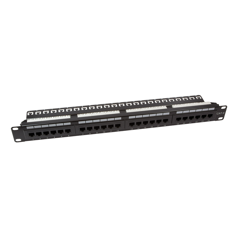 CAT6 24 poorts patchpanel met backbar. Dit 1U 19'' patchpanel is van hoogstaande kwaliteit en onmisbaar in uw 19'' wand- of serverkast. Dankzij de backbar (ondersteuningsbalk), komen uw kabels nooit los en door elkaar achter het patchpanel te hangen. Dit patchpanel heeft 24 RJ45 poorten waardoor u meer dan genoeg ruimte heeft voor eventuele netwerk uitbreidingen. Een CAT6 patchpanel is geschikt voor netwerken tot 1Gbit met een bandbreedte (doorvoersnelheid) van 250MHz.