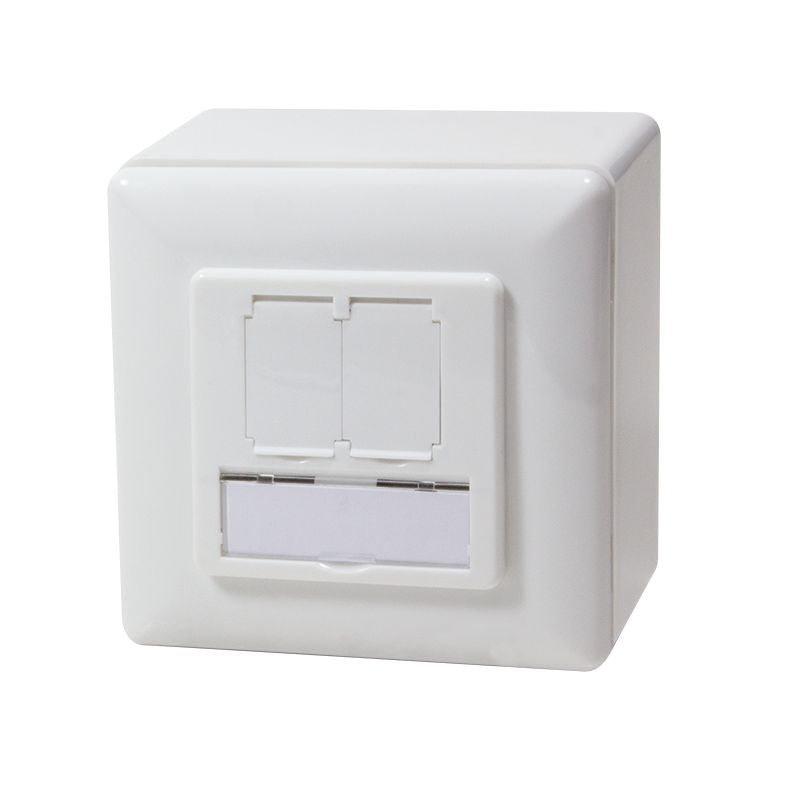 2 in 1, zowel inbouw als opbouwdoos CAT5e 2x RJ45 afgeschermd LSA2 RJ45 aansluitingenVolledig afgeschermde uitvoering met kabel trekontlastingAansluiting via LSA strokenGecertificeerd conform categorie 5e, EIA TIA 568 and ISO IEC 11801 / EN 50173