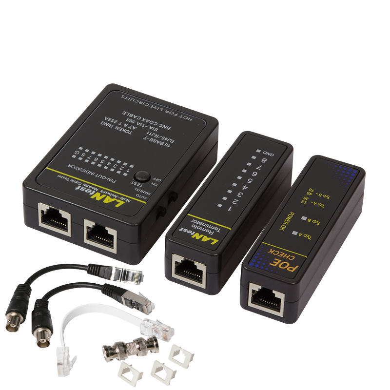 Met deze netwerk kabel tester is het mogelijk UTP, FTP, SFTP en BNC kabels te controleren. Met de remote unit is het makkelijk om bestaande bekabeling door te meten. Ideaal om weggewerkte kabels te controleren. De LEDs geven aan of de afzonderlijke aders in de kabel goed zijn. Deze set is uitgerust met een POE-zoeker die beoordeeld en bepaalt of een netwerkkabel- of poort PoE (Power over Ethernet) levert of niet.