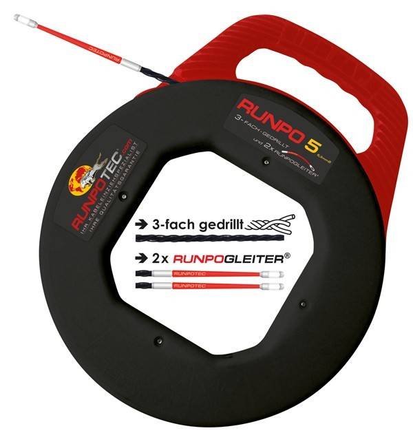 De Runpo-5 is een kunststof trekveer die bestaat uit drie afzonderlijke in elkaar gedraaide strengen, hierdoor is hij uiterst stabiel en flexibel. Aan beide uiteinden is de Runpogleiter gemonteerd, dit is een flexibel eindstuk die geen enkele moeilijke bocht uit de weg gaat.